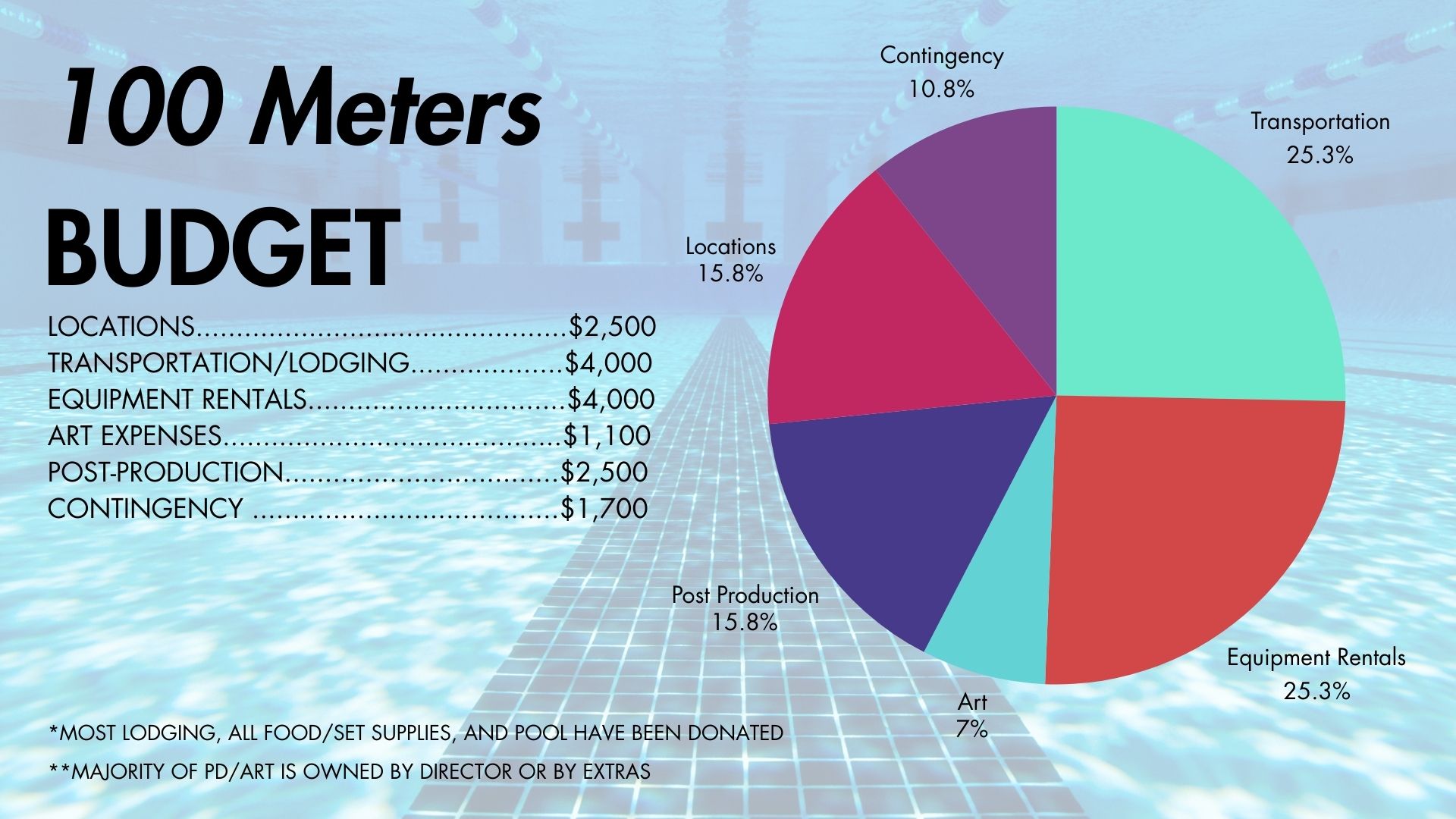 THE PLAN: 100 Meters is currently in pre-production and has been officially green-lit by NYU Tisch School of the Arts for production. We have locked a dedicated team of department heads, secured major locations integral to our shoot, and have begun the casting process.