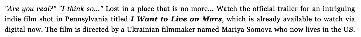 CHECK OUT I Want to Live on Mars -- Directed and Written by Mariya Somova