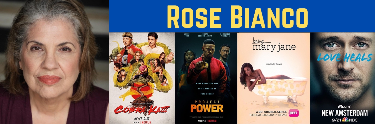 Best known as the Rosa, Miguel's doting grandmother on Cobra Kai (Netflix), Rose Bianco is a classically trained actress. Her previous work include the role of drug cartel Matriarch in the Netflix movie Project Power, a guest starring role as Jane's grandmother in Doom Patrol, and the Gerard Butler movie Greenland. She will be seen this summer in the premiere of McNamara-Brookwell's original story, Moonrise, starring country singing star Granger Smith, premiering on Pureflix streaming service.