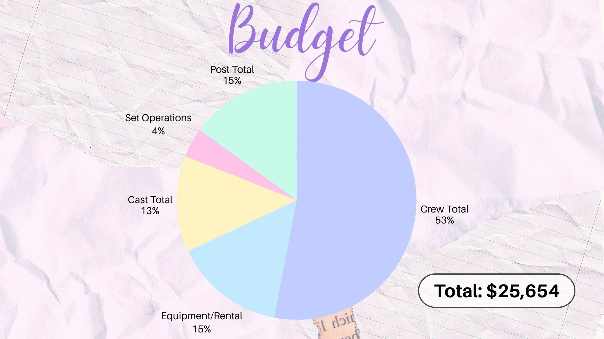 Covers the cost of our post-production team including: editor, colorist, sound designer, composer and featured artist