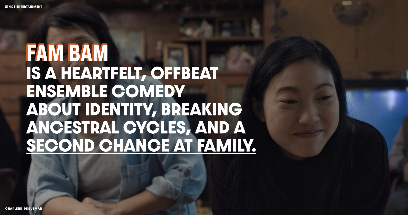 And while we’ve seen immigrant stories before, we haven’t seen many about their children who were born in America. FAM BAM tells the story of the children of immigrants, the second generation. Second-generation kids who are now adults, trying to find their own identity. Honoring the struggles and sacrifices of their parents, while also finding and honoring their own path. Can they be grateful, but also pissed? Can parents be heroic, but also kind of bad?