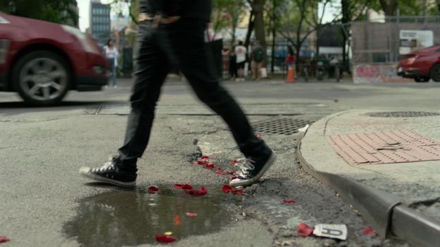 The structure of the twin shorts is the same. We follow a man through a frenetic sea of city life to a rooftop where a woman awaits, observing the passage of time. As he moves through the world, we are momentarily lost in the everyday lives of those he encounters. While the images, situations and characters he passes in each short mirror each other, the way in which they're captured slightly shifts reflecting the unique energy of each city. Once the main characters come together, we witness a conversation that serves as a pinnacle point in their relationship.