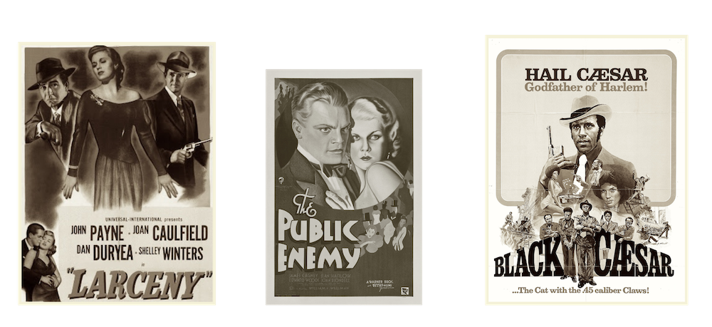 FILMIC INSPIRATION for Love & Death (even though it's an original scripted story) was found in The Public Enemy by William A. Wellman (1931), Larceny by George Sherman (1948), and Black Caesar by Larry Cohen (1973). There will be Hitchcockian elements as well in the film.
