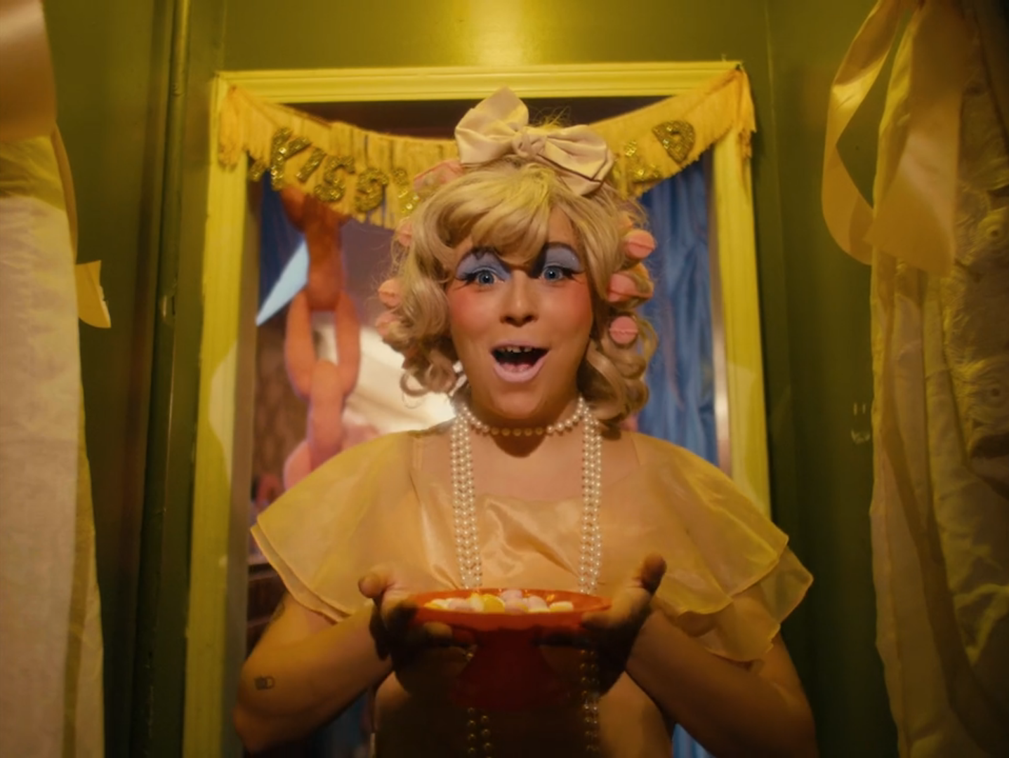 Make Out Party examines sensuality/sexuality playfully, almost from a PG-13 perspective. Sexuality in cinema is often demonized and censored, while violence is held in high regard or worse, normalized. Make Out Party challenges cinematic sexual taboos, highlighting this tension by glorifying the act of making out, an activity generally regarded as juvenile, impolite, or adolescent. By inviting all to participate, this tension is turned into a joyous and radical act, free from judgement or danger.