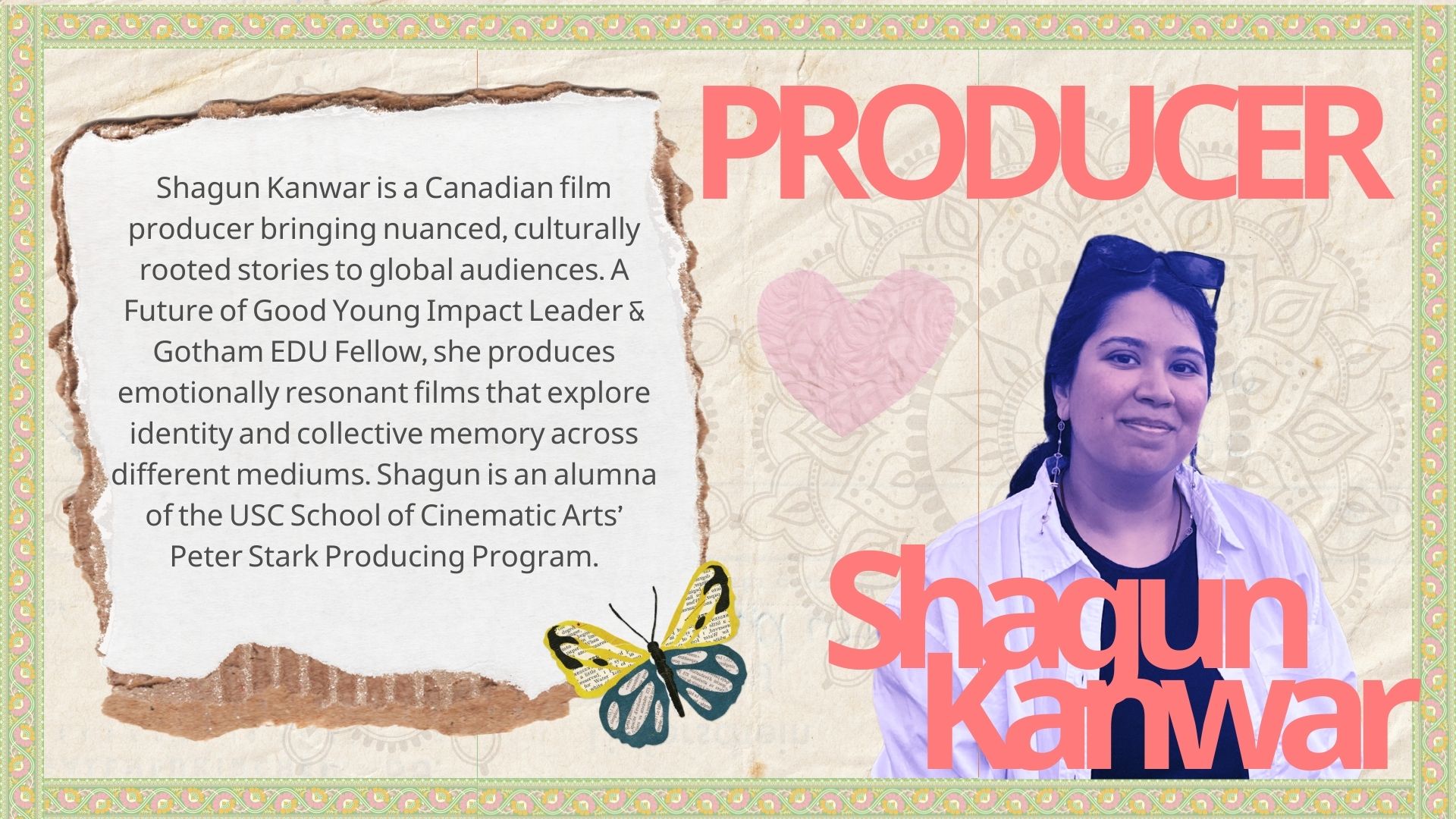 As a South Asian filmmaker, I’m deeply committed to uplifting AAPI voices and expanding how our stories are seen in the mainstream. Representation matters not just for visibility, but for truth. This feels especially urgent for women, whose stories have too often been overlooked, simplified, or told by others. I aim to breakthrough the barriers that have often held back AAPI filmmakers and make the space with the beautiful story of Mehendi.