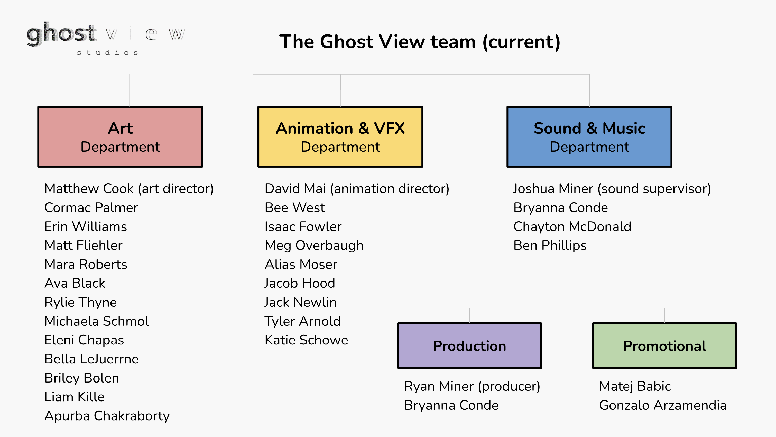 "My time at Ghost View has had me researching and exploring all different kinds of animation styles, along with various approaches to marketing. Doing this in a fresh environment means that nothing is off the table, so I’m excited to see where it leads."
