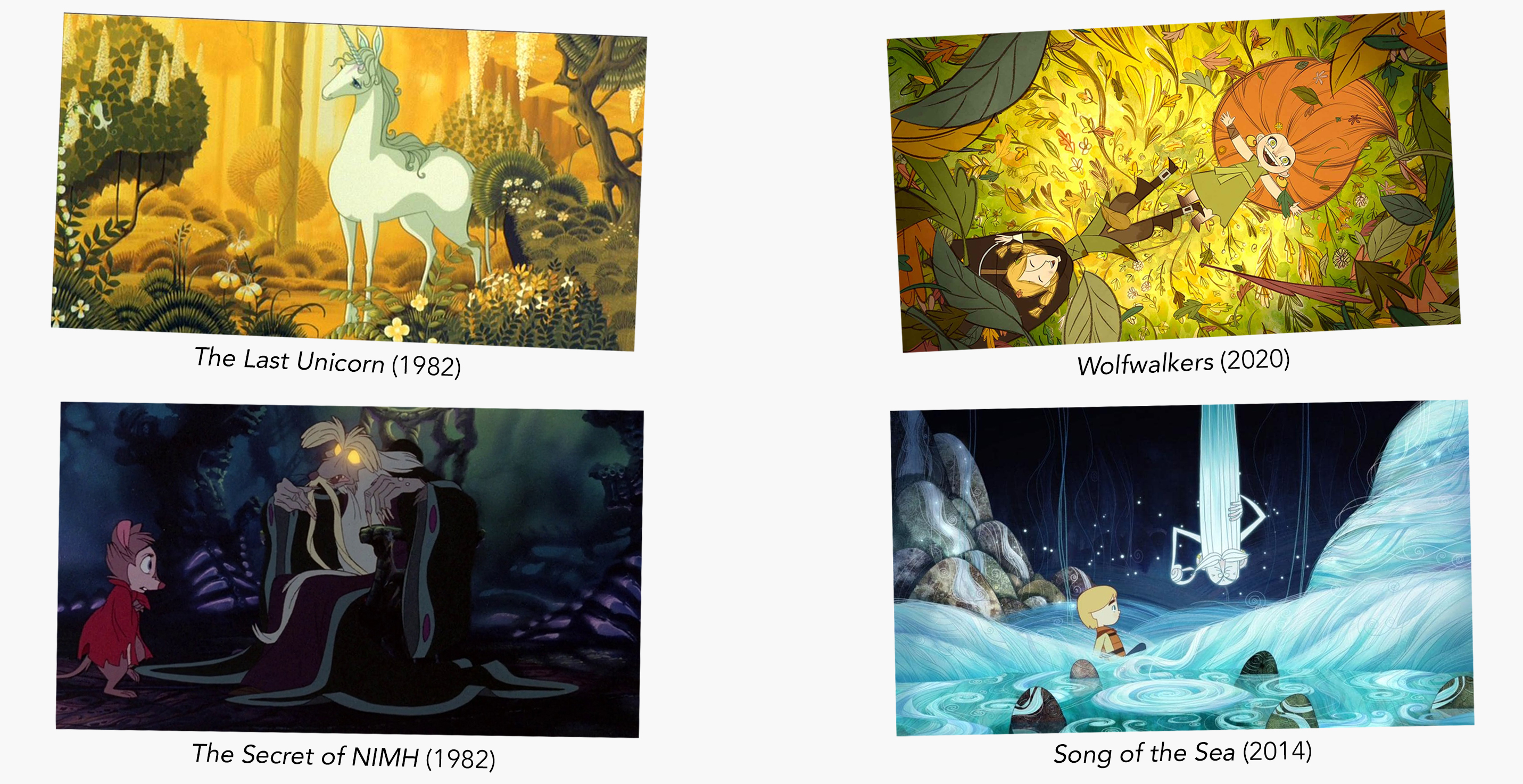 As our first project, Önetta fits both the ethos and the tone and style of our animation studio. Stories that ask big questions, suitable for all audiences, but with a more adult tone reminiscent of animated films of an earlier era (...our childhood!). Comparable films for our tone and style are The Last Unicorn (1982) and The Secret of NIMH (1982), as well as Secret of Kells (2009), Song of the Sea (2014) and Wolfwalkers (2020), also based on cultural legends and myths, from Irish animation studio Cartoon Saloon.
