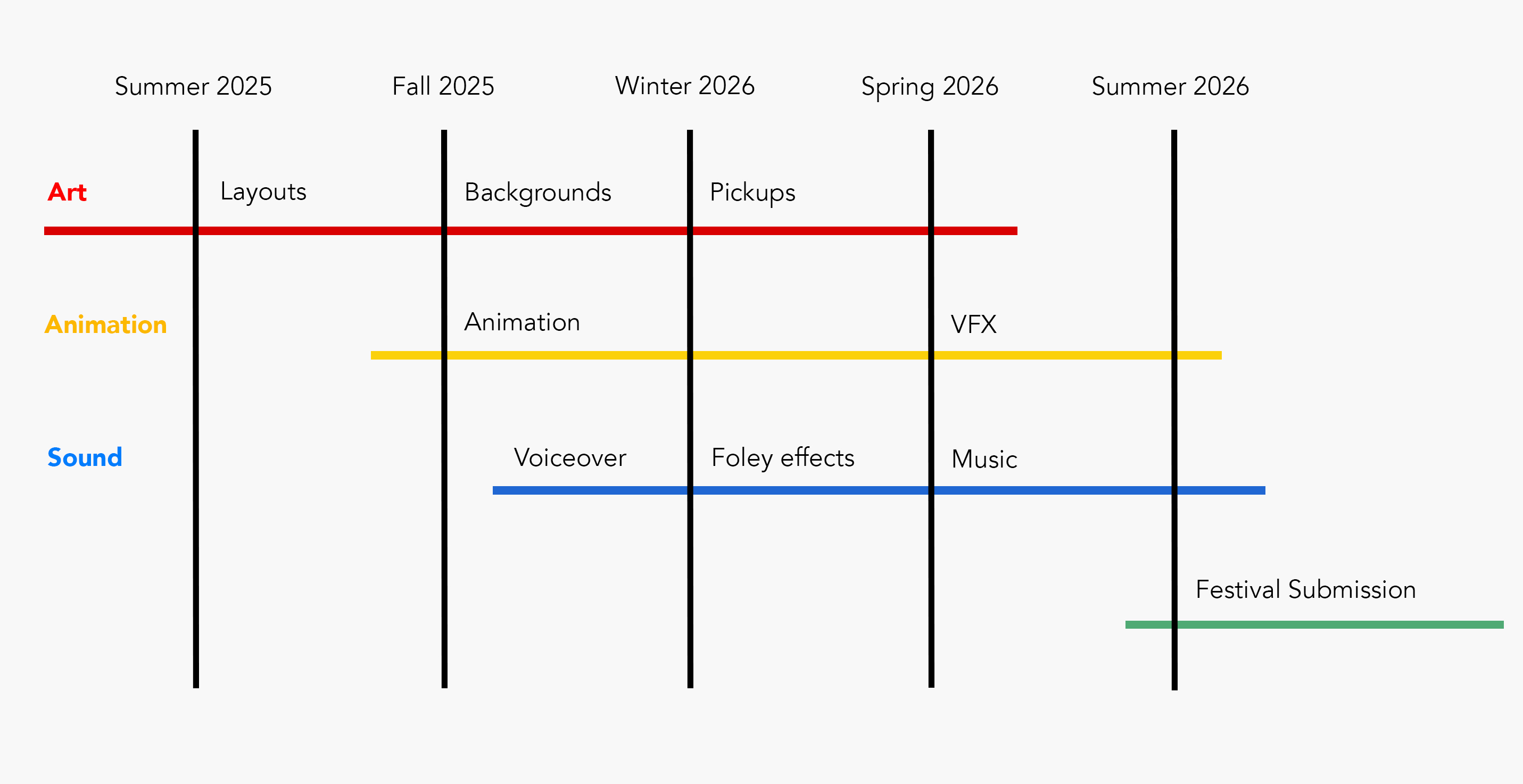 Remaining production will take approximately 6-7 months, with a festival release in fall 2026.