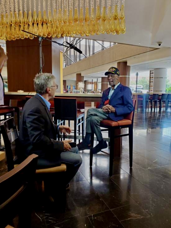 Interviewing Brigadier General Enoch Woodhouse II, J.D., at the Tuskegee Airmen National Convention in Arlington, VA, Sep 13, 2024. Gen. Woodhouse shared that in his many interviews, this one was unique because all we wanted to talk about was his experiences with systemic racism—"the biggest problem we face in America."