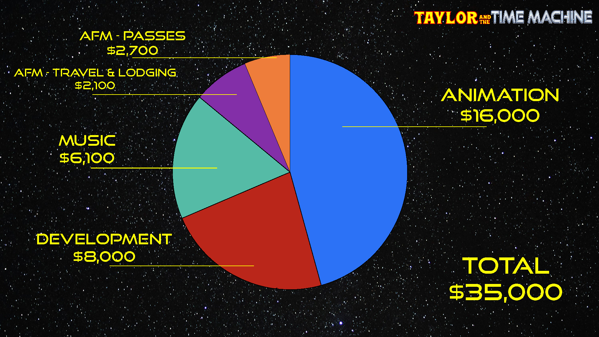 This pie chart outlines exactly where the money is going, and you can contribute directly to one of these aspects of production if you so choose!