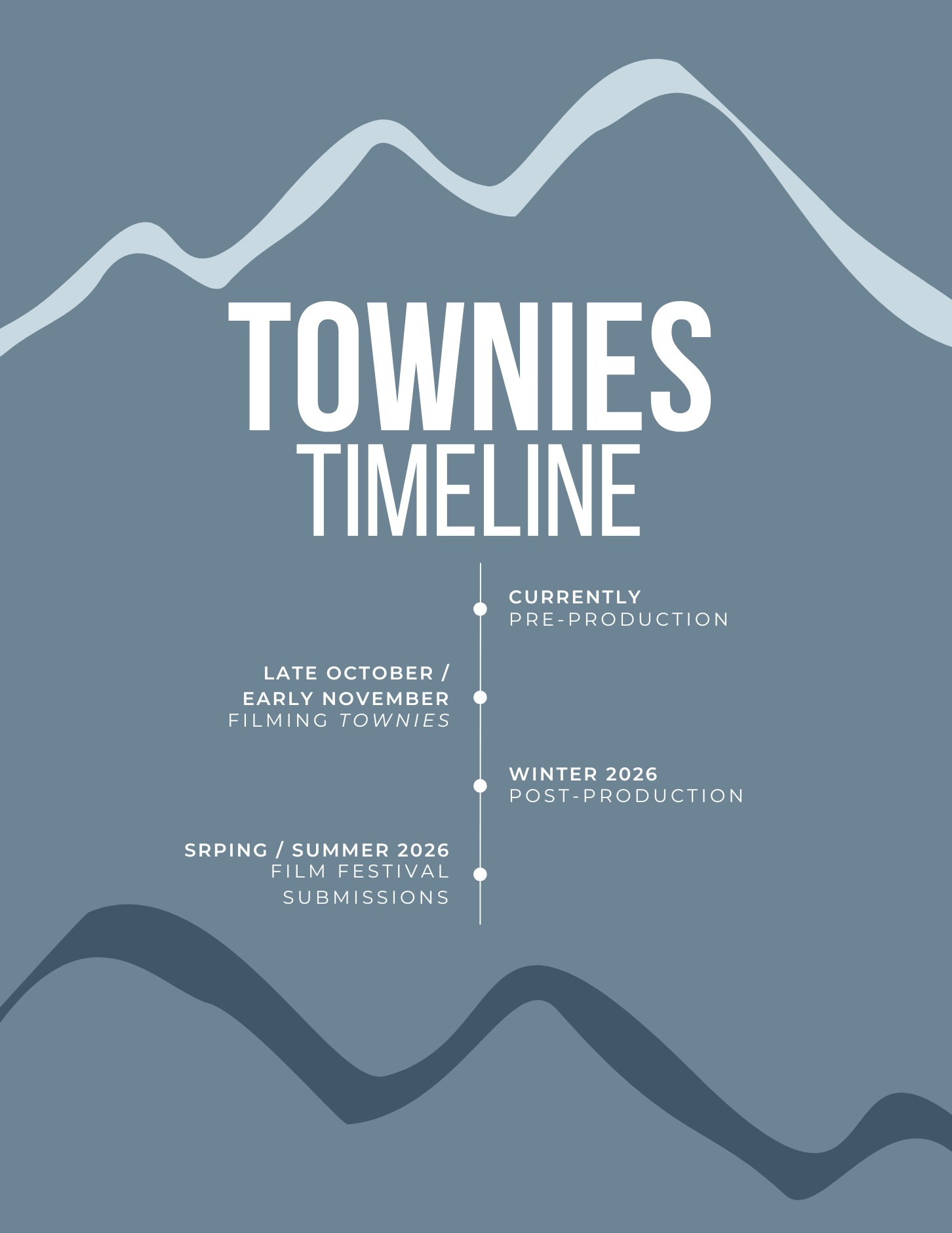 Once we finish post-production, we will submit TOWNIES to film festivals. This process will begin in the spring and early summer, for summer and fall 2026 film festivals.